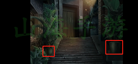 1、我们来到第二个场景,点击两侧的盆栽,获得两个滑块和两个石块。