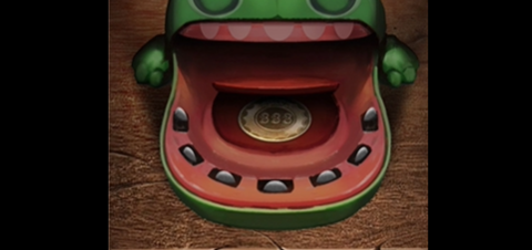 6、回到客厅,将牙齿放到玩具鳄鱼的嘴巴里,然后以此按下牙齿,成功获得另一枚金币。