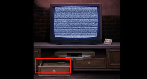 1、完成剧情之后,我们来到客厅,在电视下面的左边抽屉获得一个打火机。