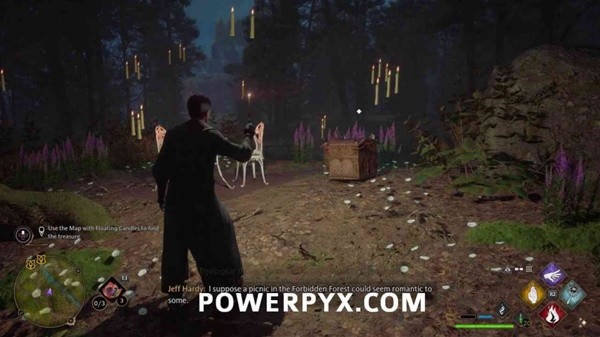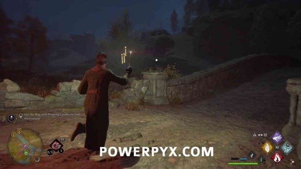 跟着蜡烛走,穿过桥梁往北进入禁林,当蜡烛停下来的时候会出现宝箱,开箱拿到奖励,寻宝结束。
