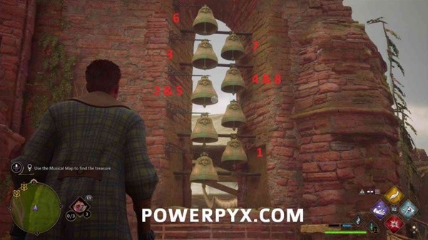 清理敌人之后,找到钟,按下图数字顺序使用普通攻击敲钟就可以解开谜题。