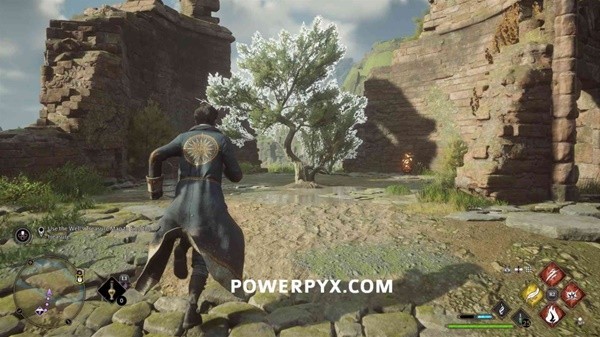 废墟里有棵树,使用【原形立现】可以看到树下有个宝箱。使用【啦唯啊萨】把树拔出来,就能开宝箱拿奖励了。