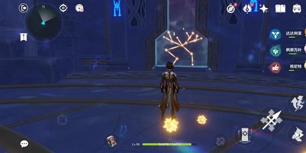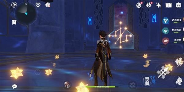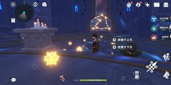 继续深入,来到这个地方,需要正确连接这里的机关,周围与对岸有线索(几个星星和一块碎片,碎片要放对岸装置上,所有线索集齐后在头顶会显示正确顺序),正确连接后可获得一个精致宝箱