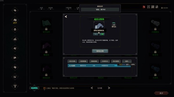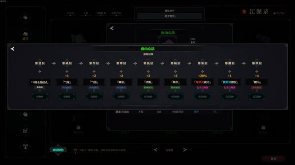 那么所谓的神级武学就出现了,它们的共同特点是:低修为点占用但提供大量优质属性。在一周目和游戏前中期学习的话可以快速提升人物的战斗实力。