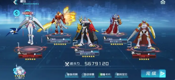 前中期可选用完全体数码兽构筑阵容,其中火元素以爆发为主,更适用于前中期推图。
