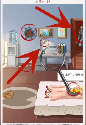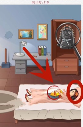 1、用户进入关卡后得到放大镜,首先拖动放大镜到大嫂的肚子上找到薯片,再点击头上的甜甜圈。
