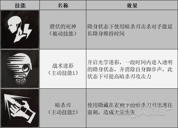 汉克的技能都和隐形有关,在隐身状态下用【暗杀刃】击杀对手就能延长隐身持续时间,让你有更多的机会去杀戮。但需要注意的是,【暗杀刃】的攻击范围较小,如果敌人距离你较远,那么最好还是使用枪械进行攻击。