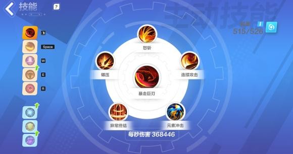 连接技能:碾压、怒斩、连续攻击、元素冲击、电能超载。