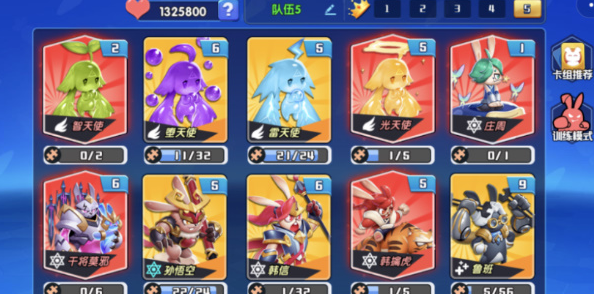 3、五召唤阵容:智天使,堕天使,雷天使,光天使,庄周,干将莫邪,孙悟空,韩信,韩擒虎,鲁班。