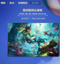 3、拼图一共需要16个碎片,完成之后可以领取【夏日海滩】头像框,分享还能够获得龙魂水晶奖励