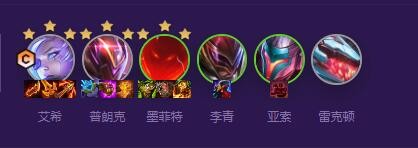 阵容棋子:艾希+普朗克+墨菲特+李青+亚索+雷克顿