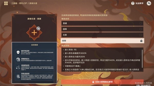 活动boss与大世界比多了些技能, 可以主动使用「离调」,以更快速的击败敌人。次数有限,不同难度,使用次数也不同!