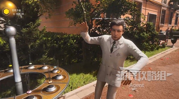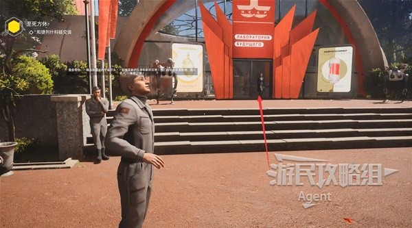 查看纪念碑后,来到实验室与门口的机器人对话。