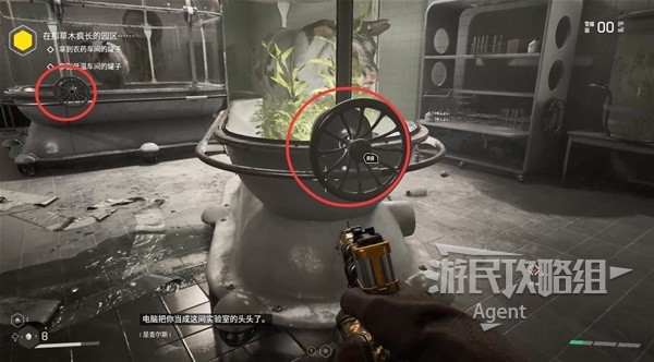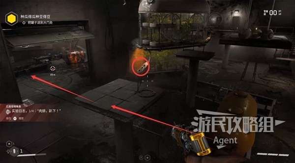 岔路口右拐是高温车间,向前直走是藻类车间。我们先直走,去藻类车间,向前直走安全屋里拿到【迪纳摩蓝图】。