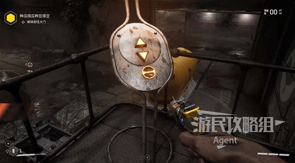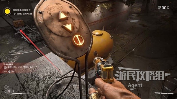 回到刚才说的,安全屋门对面的按钮,才能把黄罐子移动过来。