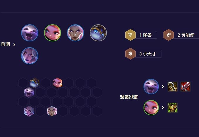 前期3小天才2护卫配合任意输出后排过渡。
