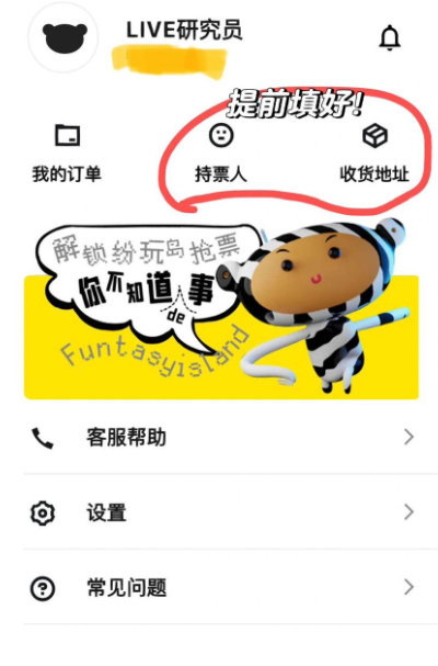 1、在纷玩岛APP里提前填好所有观影人身份证信息和默认收货地址。