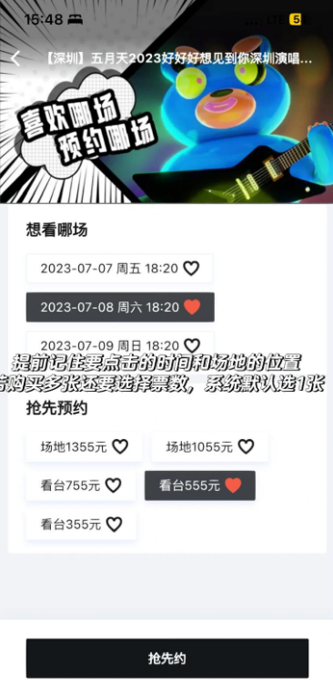 2、开票后,纷玩岛不会自动帮你勾选想看的场地和时间,除默认快递地址外,其余所有操作都需要手动点击。