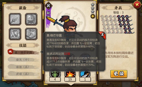 携带兵种推荐步兵2或者步兵3,步兵2为轻甲单位,用来应对敌方策士较多的情况;步兵3为重甲单位,用来应对敌方弓兵较多的情况!