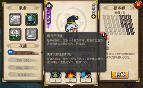 司马懿需要针对敌方的阵型进行布置,而且随机性非常大,如果能够复制到对方比较强势的武将,那么对战局还是非常有帮助的,由于技能不能造成AOE伤害也不能够造成负面效果,所以建议带上策士2。随着武将等级的提升,技能复制的持续时间也越长,这样复制的武将发动主动技能的概率就变得更高了!所以后期还是有一定的作用!