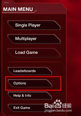 如图,打开游戏,先进入“MAIN MENU”(主菜单),点击“Options”(选项)。