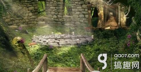 捡起左边地上的木板,解开右边岩壁上面的米字谜,之前用望远镜得到的答案。