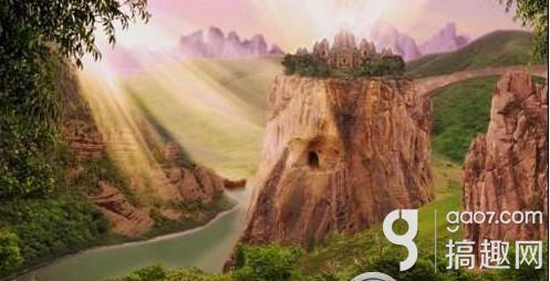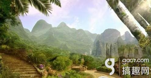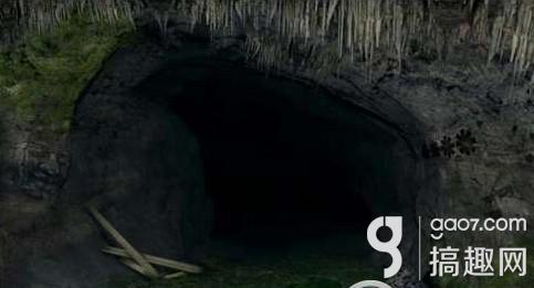 拿出望远镜,看中间的石窟,注意石窟的提示(方向从左到右依次为:↙、—、↘、—)