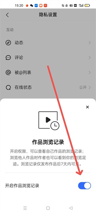 5、最后把【作品浏览记录】选项点击关闭,即可完成操作。