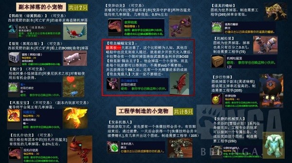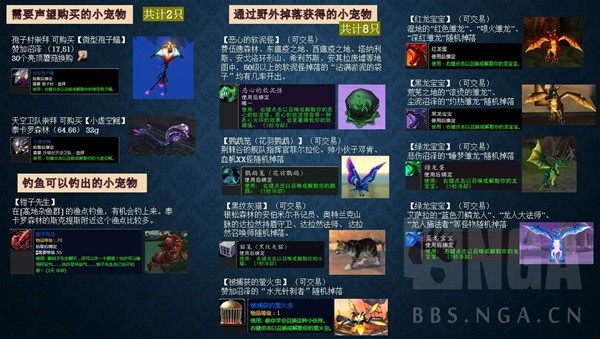 需要声望及通过钓鱼和野外打怪掉落的小宠物