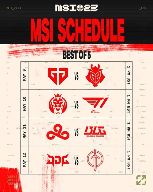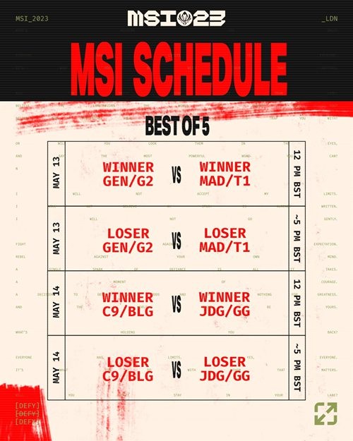MSI2023赛程_msi季中赛淘汰赛对阵表2023