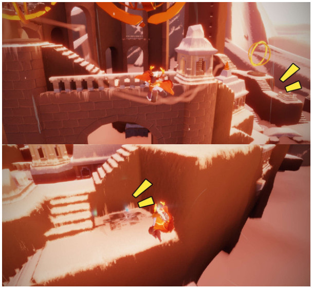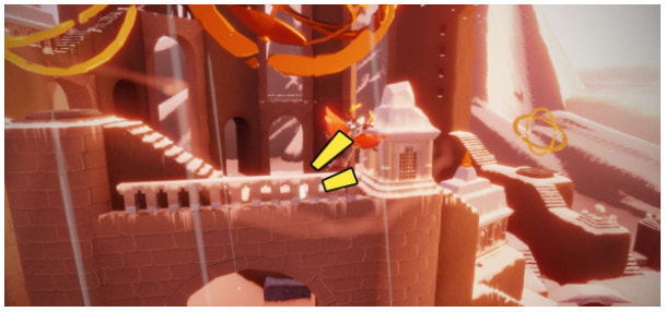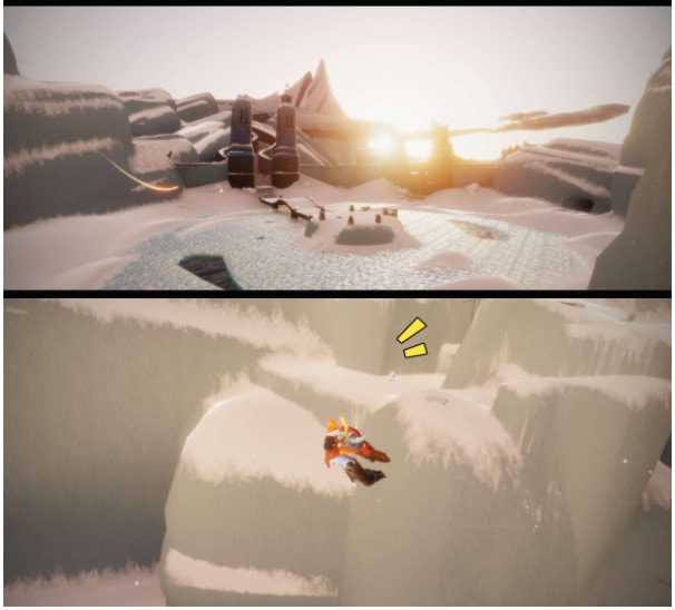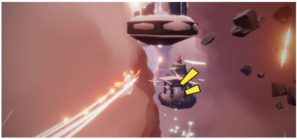 1、从遇境进入霞谷溜冰场,往右边的平台飞;