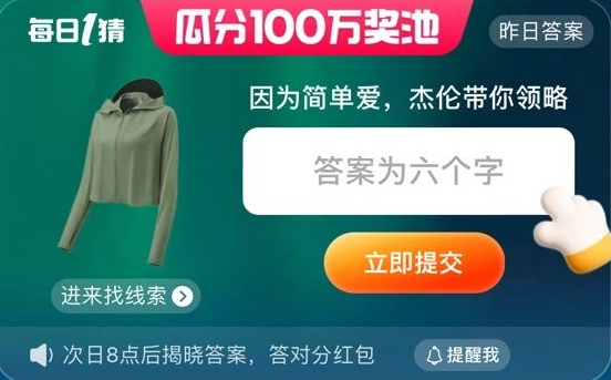 2026-01-10 12:45 来源:西西软件下载 作者:乐天派想必玩家们都非常好奇,因为简单爱,杰伦带你领略什么?感兴趣的可以来看看淘宝每日一猜答案6.2介绍!