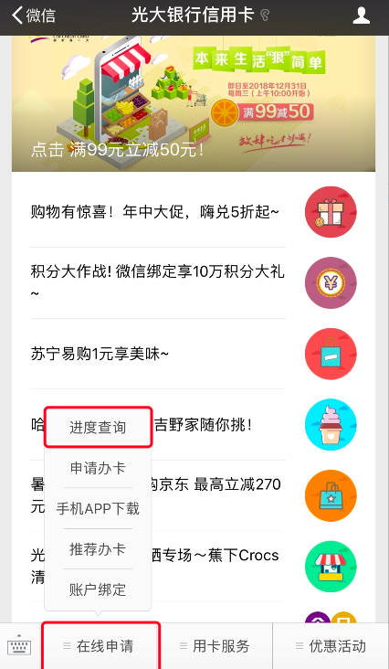 方法二:*“便”的查询方法——网上在线查询光大银行信用卡申请进度