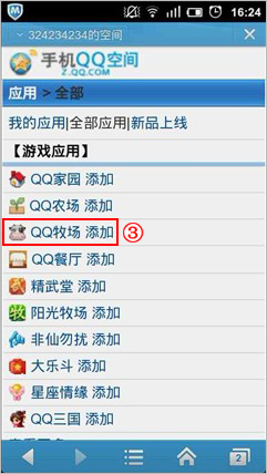4、添加成功后直接进入此应用即可玩手机QQ牧场。