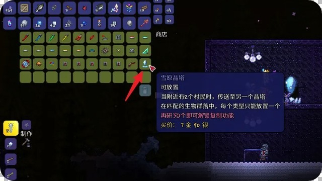 2、在以晶塔为中心,附近169个图格宽,124个图格高的长方形范围内有2个以上存活的,有房屋的NPC(也包括老人或城镇宠物)时,晶塔才可被使用。
