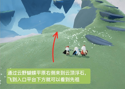 2、进入隐藏图之后,用户可以直接向前飞,在第一个浮岛石台下可以找到这位先祖。