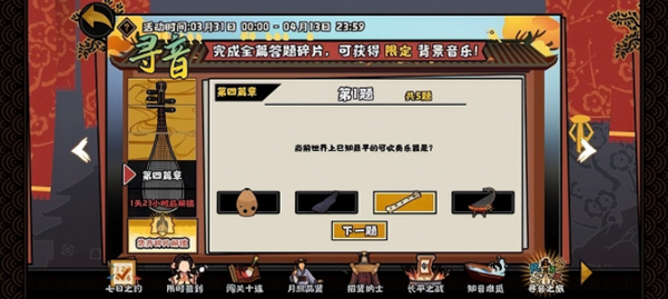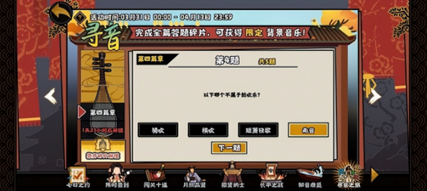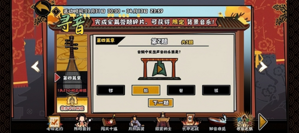 2026-01-13 13:20 来源:西西软件下载 作者:落月西斜悔华夏游戏中寻音之旅是一项新的在线答题活动,用户需要完成最新的答案,并在挑战后获得活动奖励。许多用户想知道第四章的正确答案是什么。下面小编将为您带来第四章的问题答案大全。