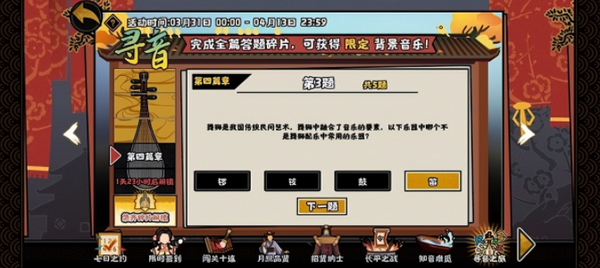 以上就是无悔华夏寻音之旅第四篇章答案大全的全部内容了,文章有系统自动收集,版权归原作者所有,如有侵犯您的权利或违规,请及时联系本站删除,更多相关无悔华夏寻音之旅第四篇答案的攻略资讯,请关注收藏西西软件下载站。