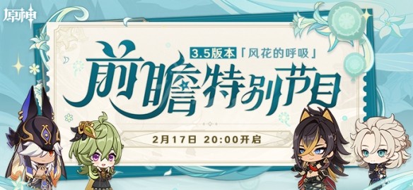 原神3.5版本「风花的呼吸」前瞻特别节目将于2月17日(本周五)晚20:00正式开启。