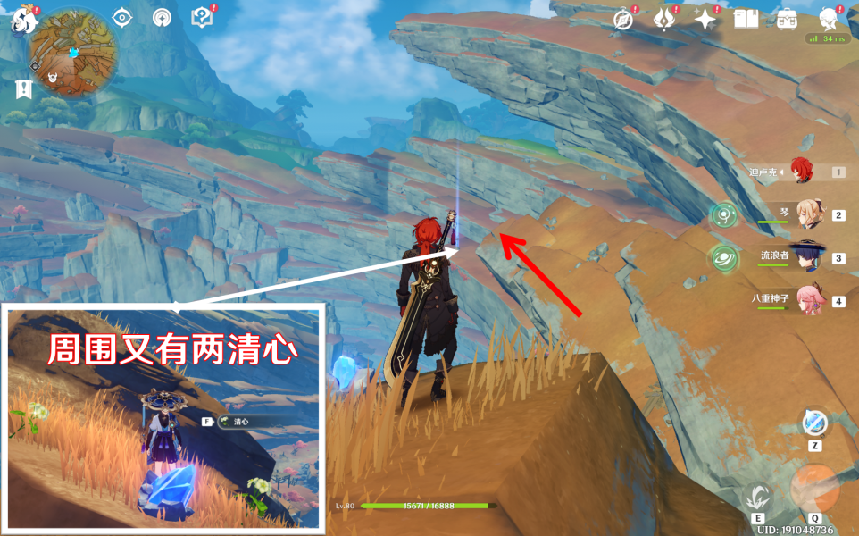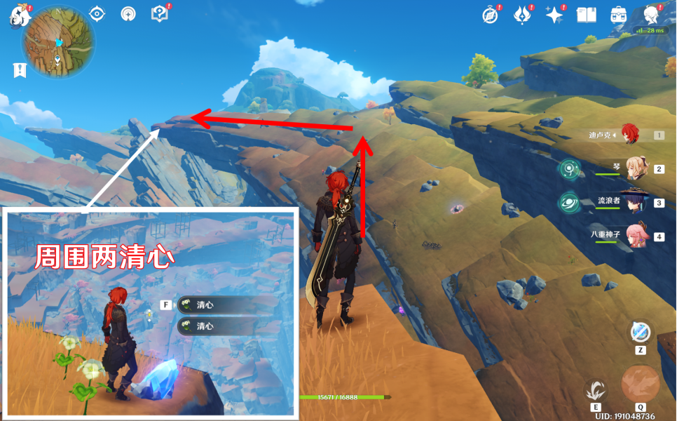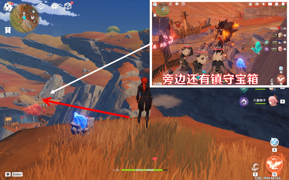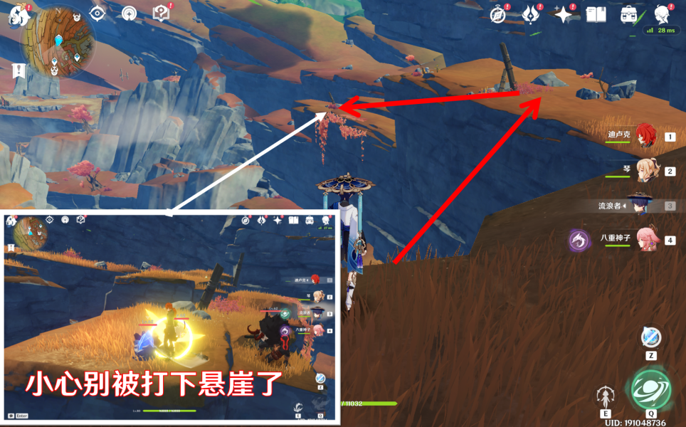 旁边有几个丘丘人看守,一定要小心别被击飞掉下悬崖,不然会非常麻烦。