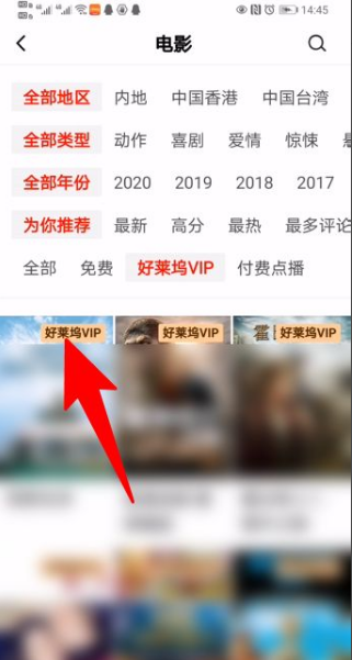 进入电影页面,点击好莱坞VIP。