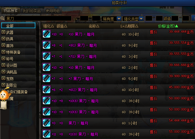 第一种,在拍卖行中购买,直接在拍卖行中搜索黑刀暗月就可以了,价格比较昂贵。