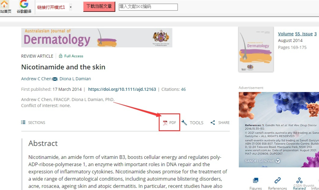 四、谷歌学术下载不了的文献解决办法,例如这篇收费文献“Nicotinamide and the skin”从谷歌学术打开文献来源链接,看到该文献收费昂贵: