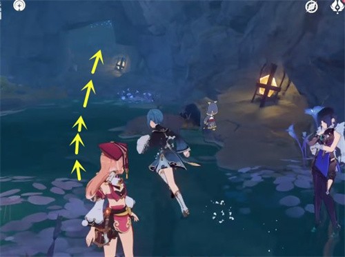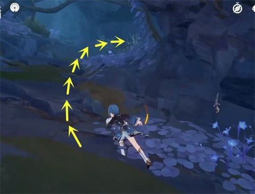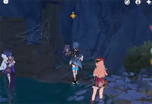 当玩家们接到“设法与魈取得联系”任务时,会出现任务指示标志,玩家们跟着标志来到目标地点,缺没有任何反应,其实玩家们是走反了,任务地点在隔壁洞穴。