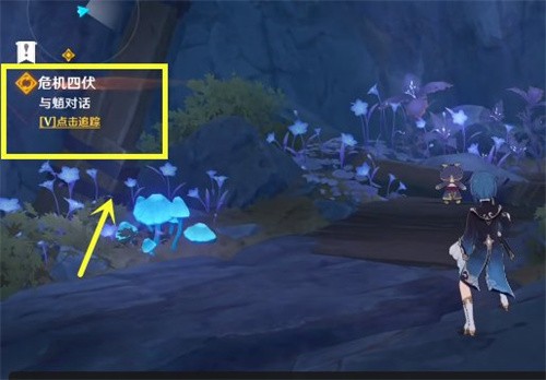 4、最后,玩家们来到目标地点,会触发下一个任务”危机四伏“,设法与魈取得联系任务即可完成。