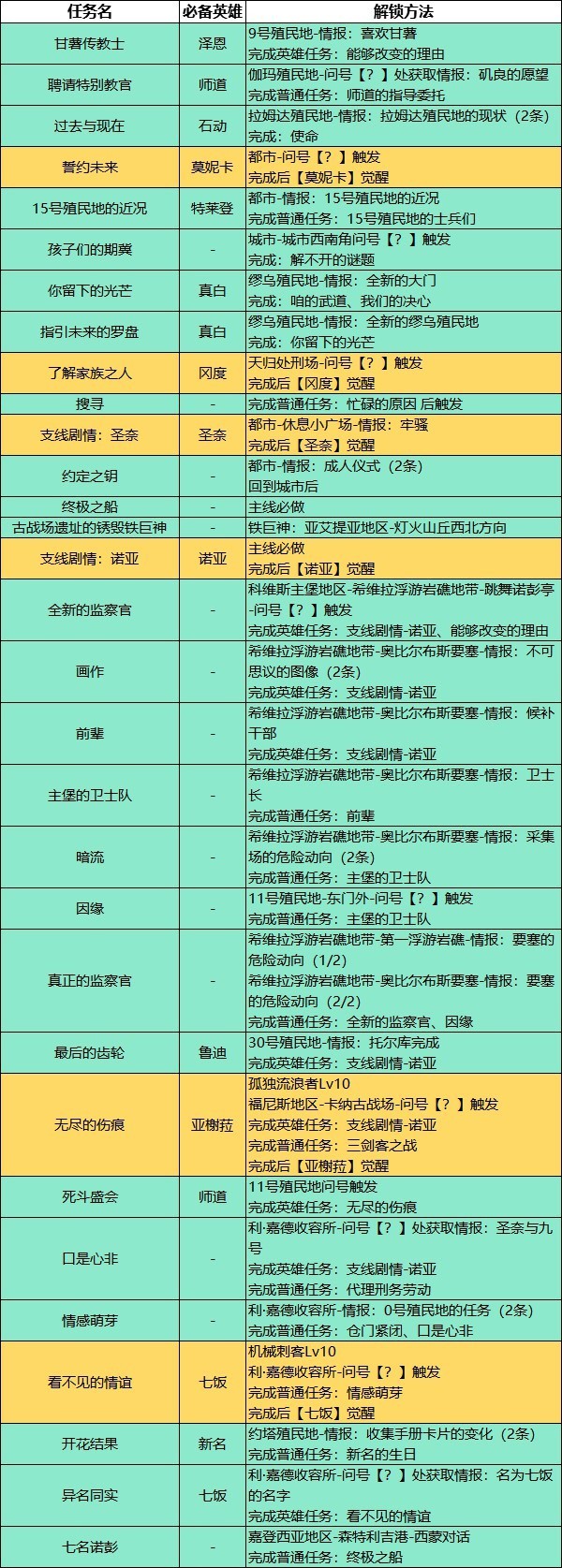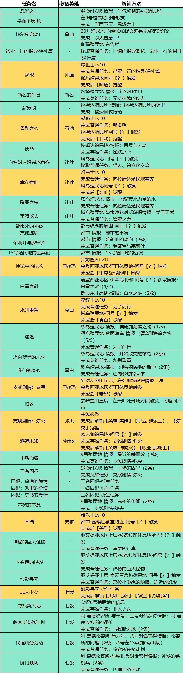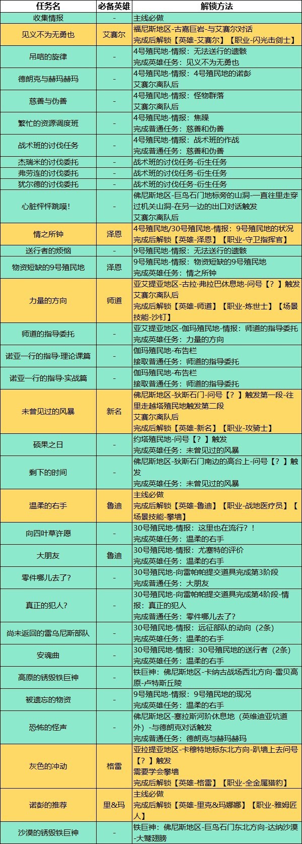 前言1、下表浅蓝色为普通任务,黄色为英雄任务。
