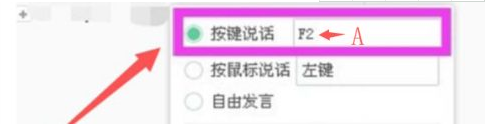 5.输入【A】之后,就可以关闭这个对话框,然后回到原来初始的对话框,可以看到面板下方已经变成了对应的字体【按住A说话】,而不是【按住F2说话】了。