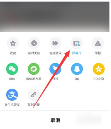 弹出的选项界面选择弹幕,点击即可关闭。开启弹幕的话也是点这里即可。