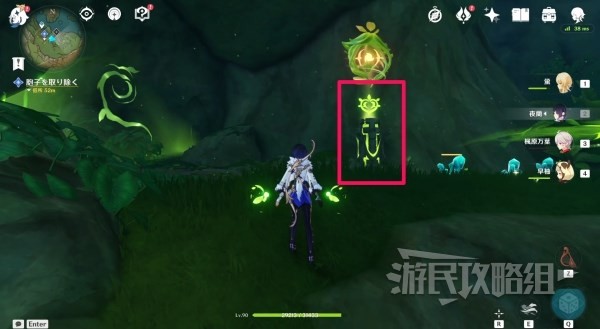 2.进入地下区域深处,点亮草元素方碑,按照出现的绿线前进。