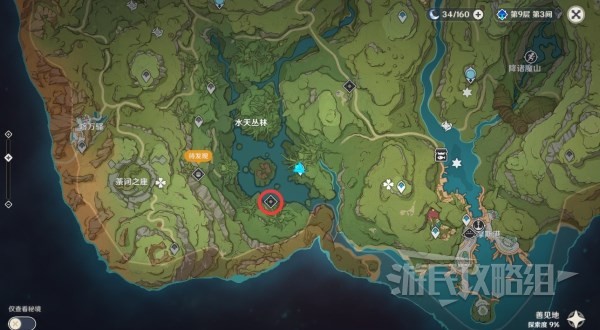 开启条件及位置【晴雨的经纬】秘境位于须弥南部,需要先推进世界任务「水天供书」,否则无法进入地下区域;同时需要推进森林书系列任务「梦中的苗圃」拿到新芽迸发的曲调。具体位置如下图所示。